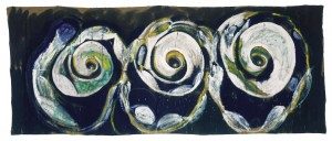 Kohle, Acrylfarben, Kittmasse und Schneckenhäuser auf Jute,  200 x 500 cm