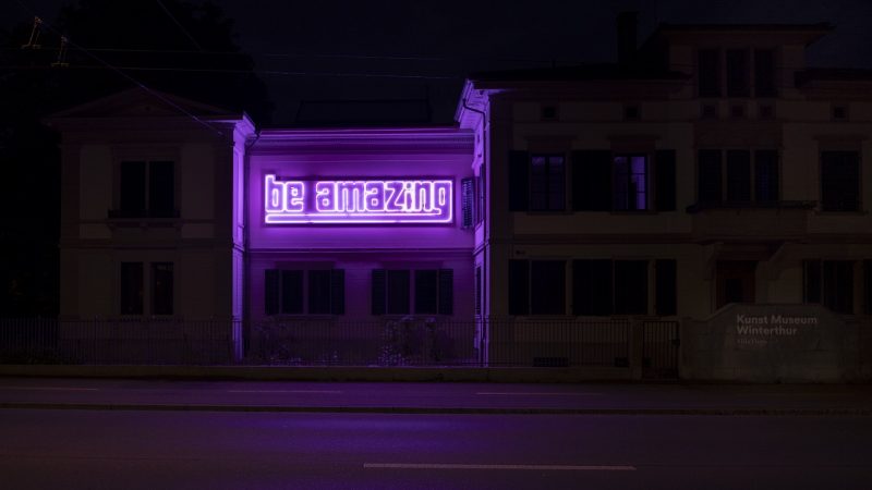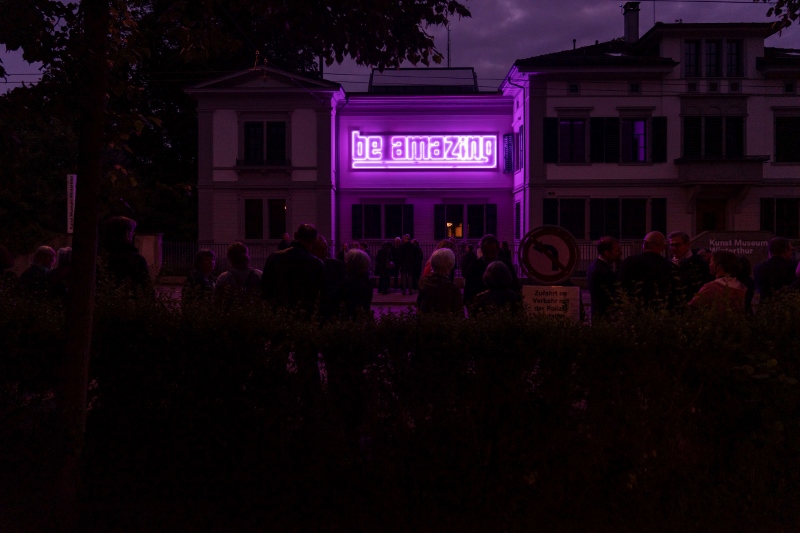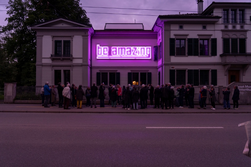 Mit der Villa Flora stiess im Frühling 2024 das dritte Haus zum Kunst Museum Winterthur. Bereits im Jahr 2021 hat der Galerieverein mit der Arbeit von Bethan Huws eine Installation im öffentlichen Raum realisiert und so die Sichtbarkeit und Verbindung zwischen den Häuser sichtbar gemacht. Diese Tradition will der Galerieverein fortsetzten, und zwar mit der Neonarbeit be amazing der Schweizer Künstlerin Sylvie Fleury (* 1961) an der Fassade der Villa Flora.